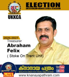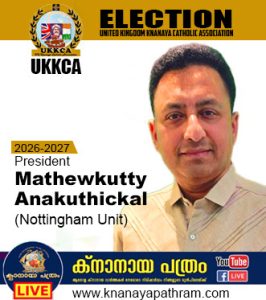 യുകെയിലെ ഏറ്റവും വലിയ പ്രവാസി സംഘടനയായ യു കെ കെ സി എ യുടെ 2026 – 2027 പ്രവർത്തന കാലഘട്ടത്തിലേക്കുള്ള ഇലക്ഷൻ ഇന്ന് UKKCA ആസ്ഥാന മന്ദിരത്തിൽ വെച്ച് നടത്തപ്പെട്ടു . പ്രസിഡൻറ് സ്ഥാനത്തേക്ക് മാത്രമാണ് ഇലക്ഷൻ നടന്നത്. മാത്തുക്കുട്ടി ആനകുത്തിക്കലിൻ്റെ പാനലിൽ മത്സരിച്ചവർ മറ്റെല്ലാവരും എതിരില്ലാതെ തെരഞ്ഞെടുക്കപ്പെട്ടിരുന്നു .