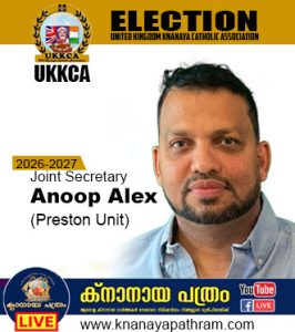 UkkCA 2026 യുടെ 2026 2027 കാലത്തേക്ക് തിരഞ്ഞെടുക്കപ്പെട്ട അനൂപ് അലക്സ് UkkCA Preston യൂണിറ്റ് മെമ്പറും മാഞ്ഞൂർ സൗത്ത് സെൻ്റ് തെരേസാ മകുടാലയം