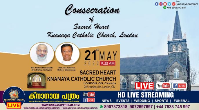 സേക്രഡ് ഹാർട്ട് ക്നാനായ കാത്തലിക് ചർച്ച് ലണ്ടൻ ദേവാലയകൂദാശ മെയ് 21 ശനിയാഴ്ച Live telecasting available